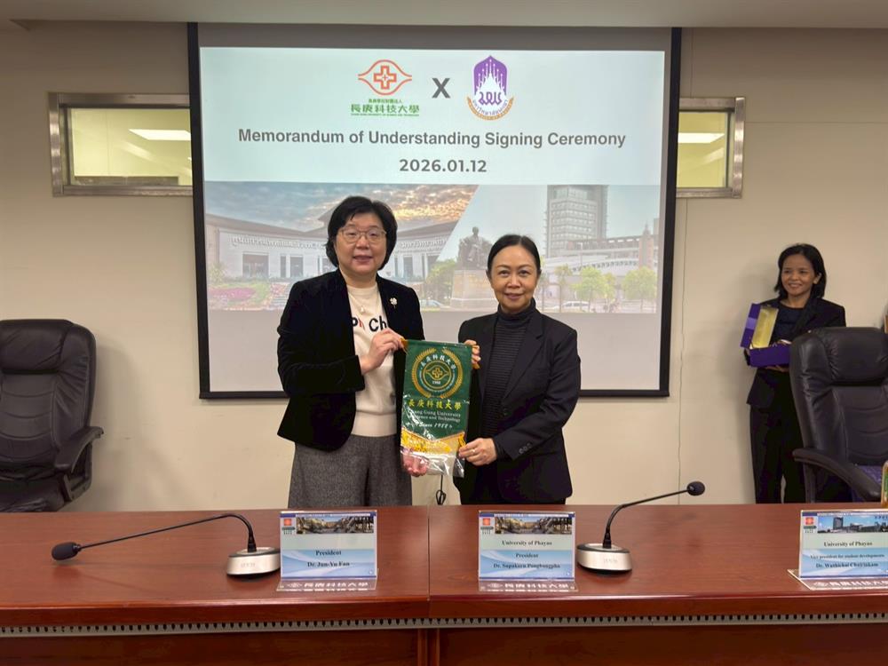 วันที่ 12-13 มกราคม 2569 ผู้บริหารของมหาวิทยาลัย นำโดย อธิการบดี รศ ดร สุภกร พงศ์บางโพธิ์ และผู้บริหารของคณะพยาบาลศาสตร์ นำโดยคณบดี ผศ ดร ดาว เวียงคำ ได้ร่วมพิธีลงนามบันทึกความเข้าใจ (MOU) ระหว่าง มหาวิทยาลัยพะเยา กับ Chang Gung University of Science and Technology (CGUST), Taiwan ซึ่งมี Dr. Jun-Yu Fan, President of CGUST อธิการของ CGUST เป็นตัวแทนในการลงนาม การทำบันทึกความเข้าใจครั้งนี้ เป็นไปตามยุทธศาสตร์ส่งเสริมความร่วมมือกับนานาชาติของมหาวิทยาลัยเพื่อผลักดันการเข้าสู่สากลของมหาวิทยาลัย โดยครั้งนี้มีวัตถุประสงค์เพื่อสนับสนุนให้เกิดความร่วมมือระหว่างคณะพยาบาลศาสตร์ กับ CGUST ในด้านการจัดการเรียนการสอน การพัฒนานักศึกษา การพัฒนาบุคลากร และการวิจัย ในโอกาสนี้ผู้บริหารคณะพยาบาลศาสตร์ได้ประสบความสำเร็จในการวางแผนความร่วมมือ กับ CGUST อย่างเป็นรูปธรรม และยังได้มีการแลกเปลี่ยนเรียนรู้เกี่ยวกับ การจัดการเรียนการสอนแบบ Simulation based learning (SBL) รวมทั้งศึกษาดูงานหน่วยบริการสุขภาพทั้งระดับตติยภูมิ และปฐมภูมิ ในวันถัดมา ที่โรงพยาบาล Chang gung Memorial Hospital และศูนย์สุขภาพ โถวเฟิน เขตเมี่ยวลี่ (Toufen health center, Mioli County)