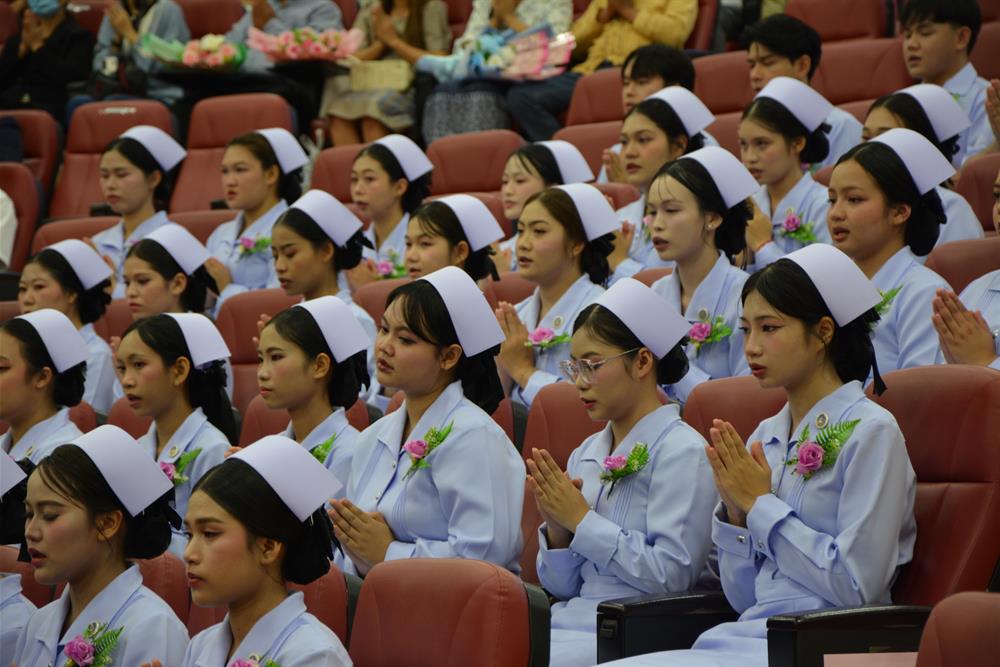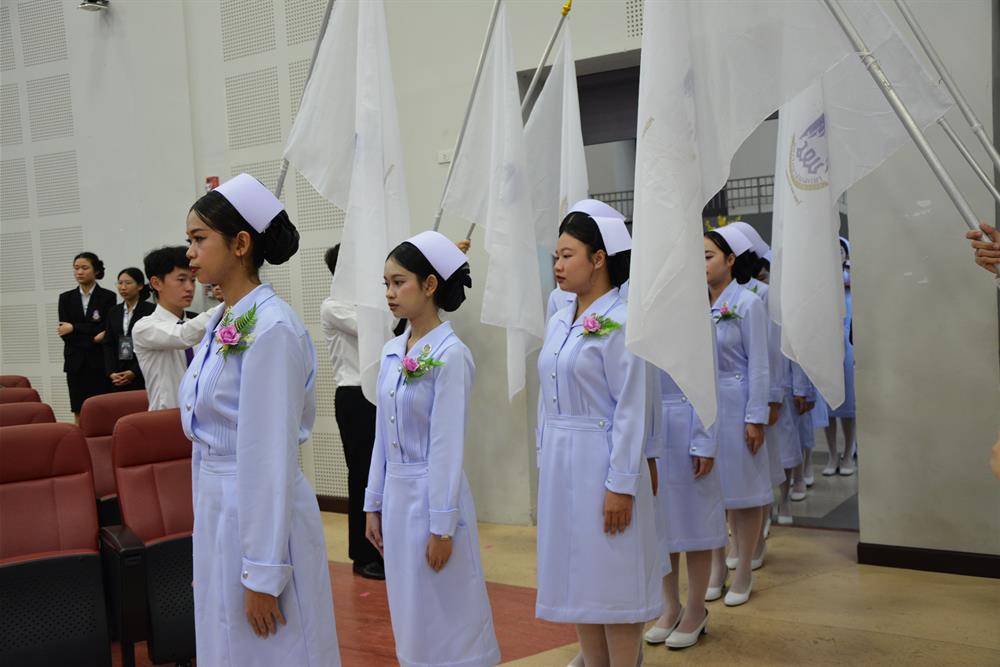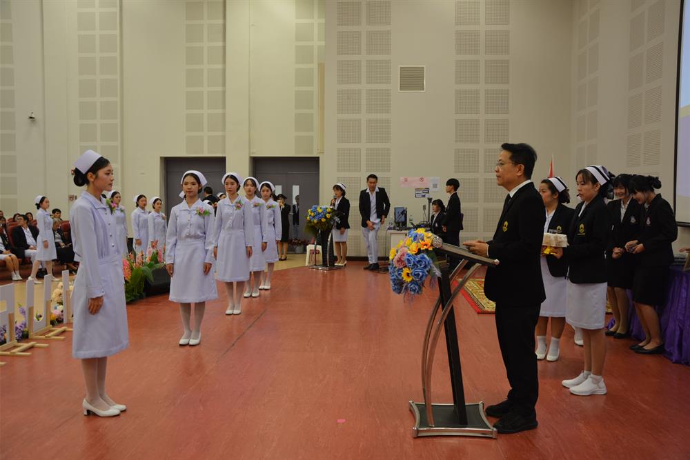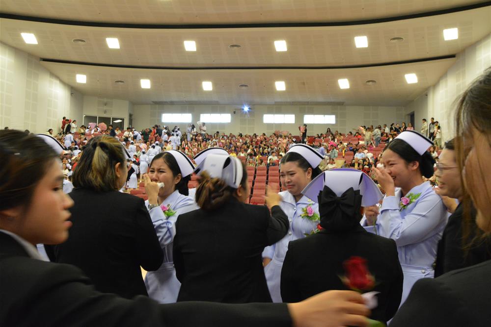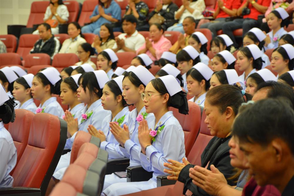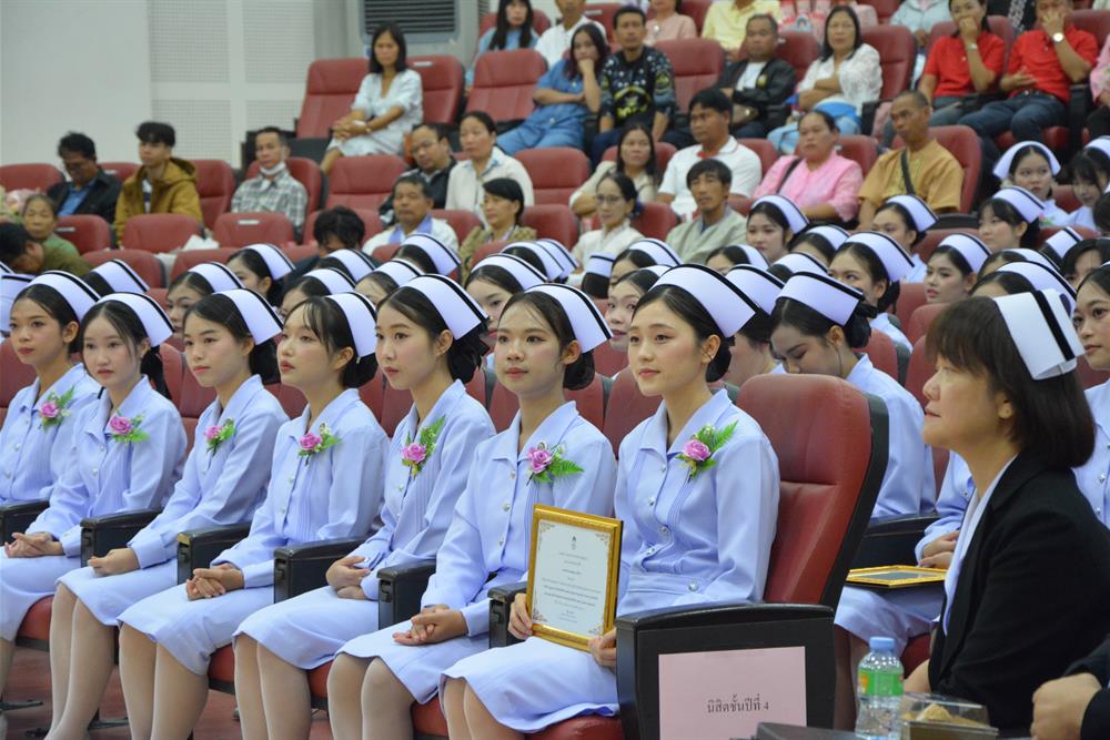 พิธีการดังกล่าวประกอบด้วยพิธีสงฆ์เพื่อความเป็นศิริมงคลแก่ผู้สำเร็จการศึกษา พิธีมอบแถบหมวกและเข็มวิทยฐานะ ซึ่งได้รับเกียรติจาก ศาสตราจารย์ ดร.เสมอ ถาน้อย รองอธิการบดีฝ่ายวิจัยและนวัตกรรม เป็นประธานในพิธี และผู้ช่วยศาสตราจารย์ ดร.ดาว เวียงคำ คณบดีคณะพยาบาลศาสตร์ กล่าวรายงานผลการศึกษา โดยท่านประธานในพิธีได้มอบแถบหมวกและเข็มวิทยฐานะแก่ผู้สำเร็จการศึกษาทั้ง 114 คน มอบเกียรติบัตรแก่ผู้ที่สอบได้คะแนนสูงสุดในการสอบประมวลความรู้สำหรับนิสิตหลักสูตรพยาบาลศาสตรบัณฑิต จำนวน 8 รายวิชา พร้อมทั้งให้ปัจฉิมโอวาทแก่ผู้สำเร็จการศึกษาทุกคน หลังจากนั้นตัวแทนนิสิตพยาบาลศาสตร์ชั้นปีที่ 1-3 กล่าวแสดงความยินดี และตัวแทนผู้สำเร็จการศึกษากล่าวแสดงความรู้สึก นอกจากนี้ยังมีพิธีอำลาสถาบันเพื่อเปิดโอกาสให้ผู้สำเร็จการศึกษาได้แสดงมุฑิตาจิตแก่คณาจารย์ผู้ประสิทธิ์ประสาทวิชาความรู้ ลำดับสุดท้ายเป็นการถ่ายภาพหมู่ร่วมกัน พิธีการดังกล่าวมีแขกผู้มีเกียรติ นิสิตพยาบาล และผู้ปกครองเข้าร่วมงานเป็นจำนวนมาก