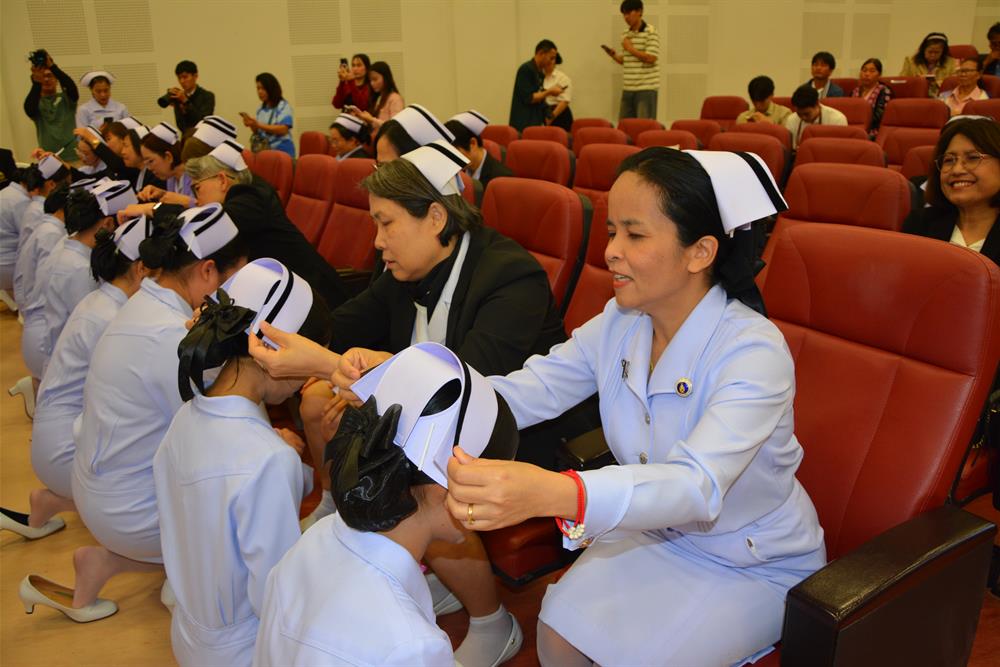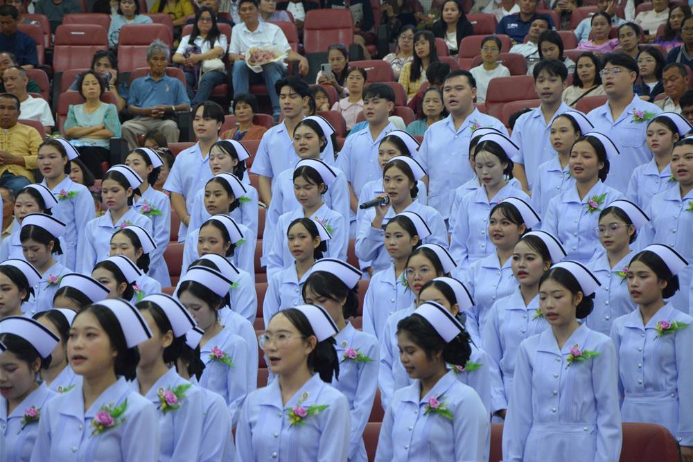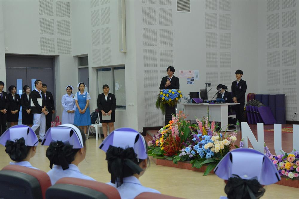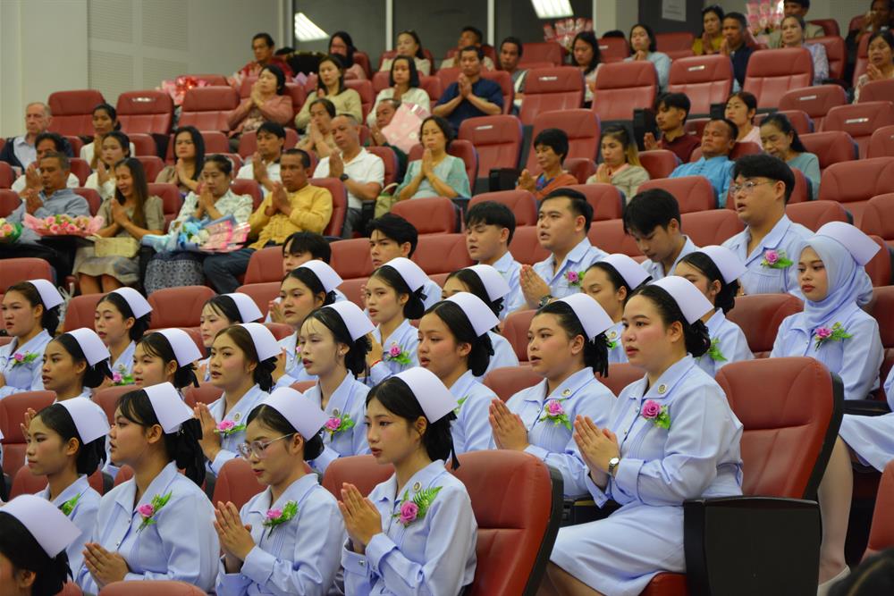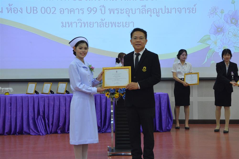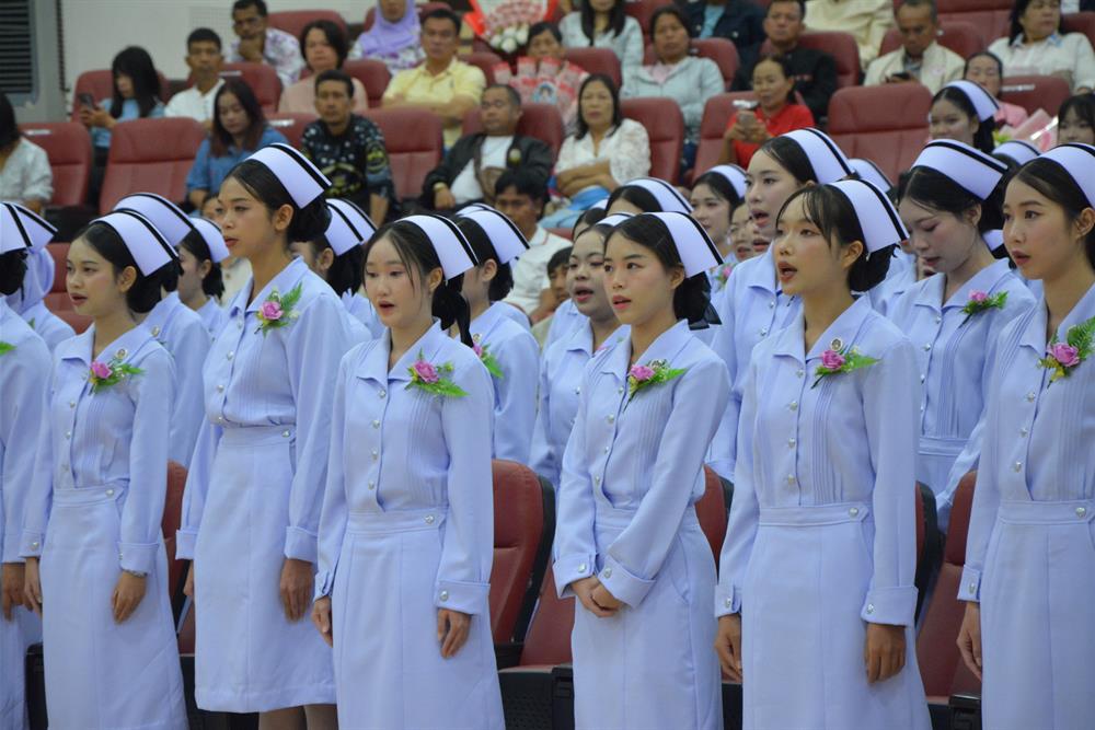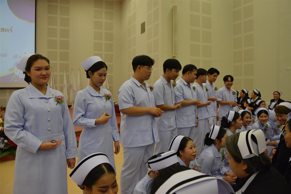 พิธีการดังกล่าวประกอบด้วยพิธีสงฆ์เพื่อความเป็นศิริมงคลแก่ผู้สำเร็จการศึกษา พิธีมอบแถบหมวกและเข็มวิทยฐานะ ซึ่งได้รับเกียรติจาก ศาสตราจารย์ ดร.เสมอ ถาน้อย รองอธิการบดีฝ่ายวิจัยและนวัตกรรม เป็นประธานในพิธี และผู้ช่วยศาสตราจารย์ ดร.ดาว เวียงคำ คณบดีคณะพยาบาลศาสตร์ กล่าวรายงานผลการศึกษา โดยท่านประธานในพิธีได้มอบแถบหมวกและเข็มวิทยฐานะแก่ผู้สำเร็จการศึกษาทั้ง 114 คน มอบเกียรติบัตรแก่ผู้ที่สอบได้คะแนนสูงสุดในการสอบประมวลความรู้สำหรับนิสิตหลักสูตรพยาบาลศาสตรบัณฑิต จำนวน 8 รายวิชา พร้อมทั้งให้ปัจฉิมโอวาทแก่ผู้สำเร็จการศึกษาทุกคน หลังจากนั้นตัวแทนนิสิตพยาบาลศาสตร์ชั้นปีที่ 1-3 กล่าวแสดงความยินดี และตัวแทนผู้สำเร็จการศึกษากล่าวแสดงความรู้สึก นอกจากนี้ยังมีพิธีอำลาสถาบันเพื่อเปิดโอกาสให้ผู้สำเร็จการศึกษาได้แสดงมุฑิตาจิตแก่คณาจารย์ผู้ประสิทธิ์ประสาทวิชาความรู้ ลำดับสุดท้ายเป็นการถ่ายภาพหมู่ร่วมกัน พิธีการดังกล่าวมีแขกผู้มีเกียรติ นิสิตพยาบาล และผู้ปกครองเข้าร่วมงานเป็นจำนวนมาก