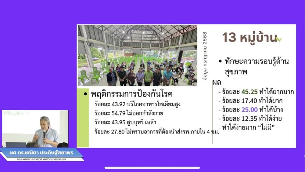 วันเสาร์ที่ 27 กันยายน 2568 คณะพยาบาลศาสตร์ มหาวิทยาลัยพะเยา จัดโครงการ หนึ่งคณะ หนึ่ง SDG ณ อาคารอเนกประสงค์บ้านดอนมูล หมู่ที่ 2 ตำบลจำป่าหวาย อำเภอเมือง จังหวัดพะเยา โดยมีอาจารย์เกษร เกตชู กล่าวรายงานและชี้แจงวัตถุประสงค์ของการจัดโครงการครั้งนี้
