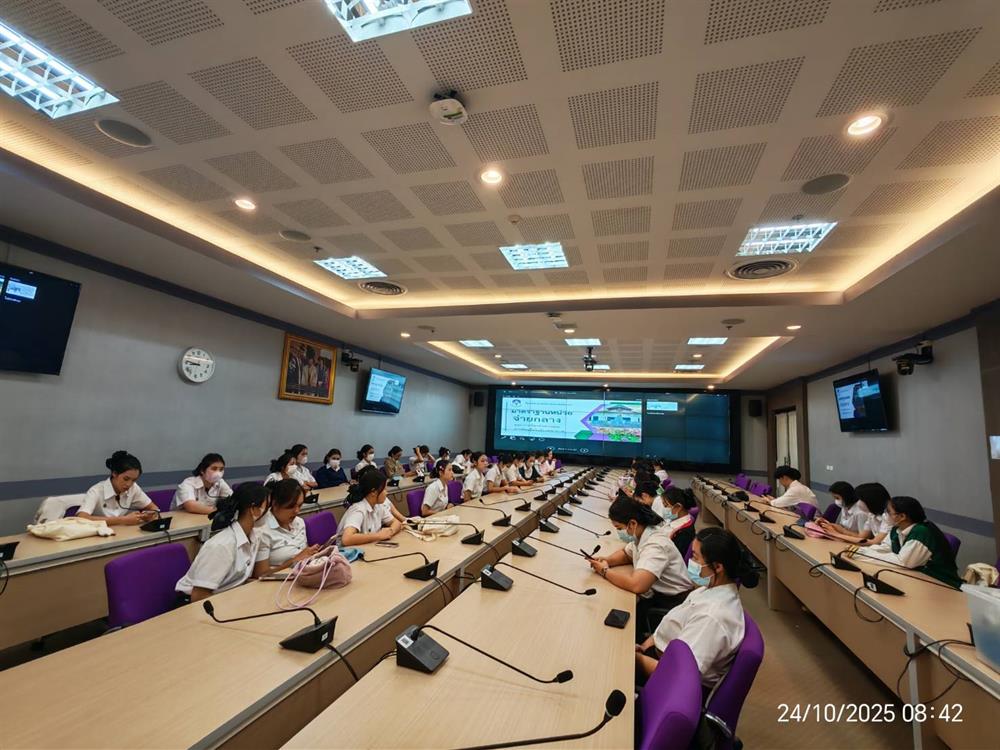 วันที่ 24 ตุลาคม 2568 ดร.กฤติพิชญ์ ฐิติพิชญานันท์ ประธานหลักสูตรประกาศนียบัตรผู้ช่วยพยาบาล คณะพยาบาลศาสตร์ มหาวิทยาลัยพะเยาได้นำนิสิตหลักสูตรประกาศนียบัตรผู้ช่วยพยาบาล จำนวน 39 คน เข้าศึกษาดูงานสถานบริการสุขภาพ ณ หน่วยจ่ายกลาง โรงพยาบาลมหาวิทยาลัยพะเยา โดยมีวัตถุประสงค์ เพื่อให้นิสิตในหลักสูตรดังกล่าว ได้เรียนรู้ระบบการป้องกันควบคุมโรคติดเชื้อ การบำรุงรักษาเครื่องมือทางการแพทย์และการพยาบาล การทำความสะอาดเครื่องมือ และการทำให้เครื่องมือปราศจากเชื้อ ซึ่งจะเป็นการเตรียมความพร้อมให้นิสิตก่อนฝึกภาคปฏิบัติในภาคการศึกษาปลาย ในการนี้ นางรุ่งทิพย์ กันทะวงค์ รักษาการแทนผู้ช่วยผู้อำนวยการพยาบาล ได้เป็นวิทยากรให้ความรู้เรื่อง มาตรฐานหน่วยจ่ายกลาง และการป้องกันควบคุมโรคติดเชื้อในโรงพยาบาล