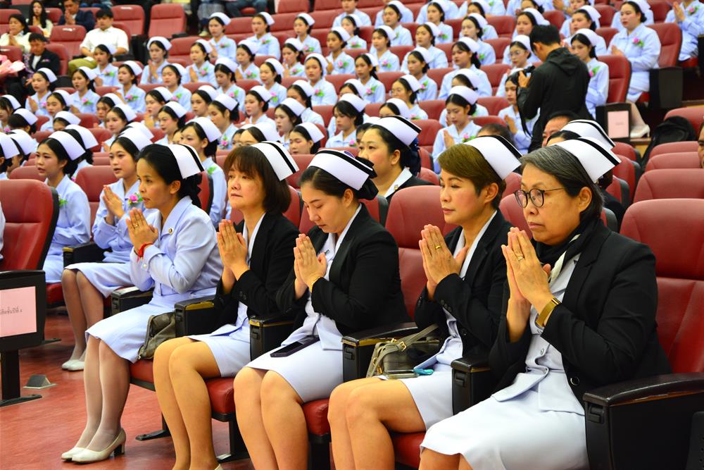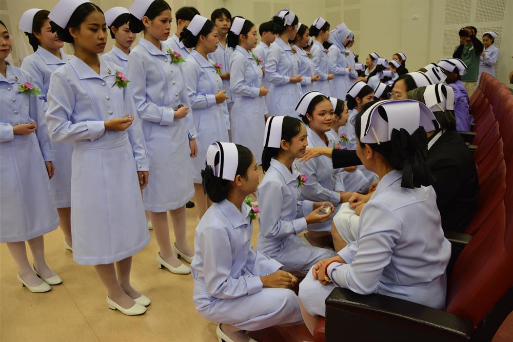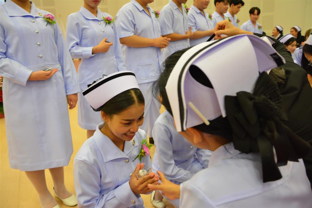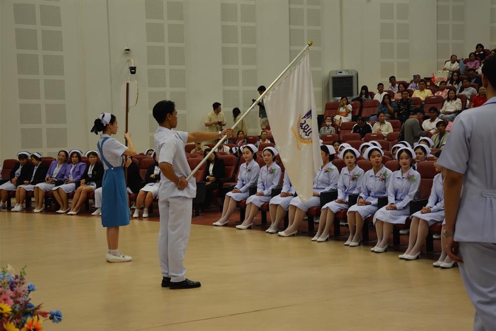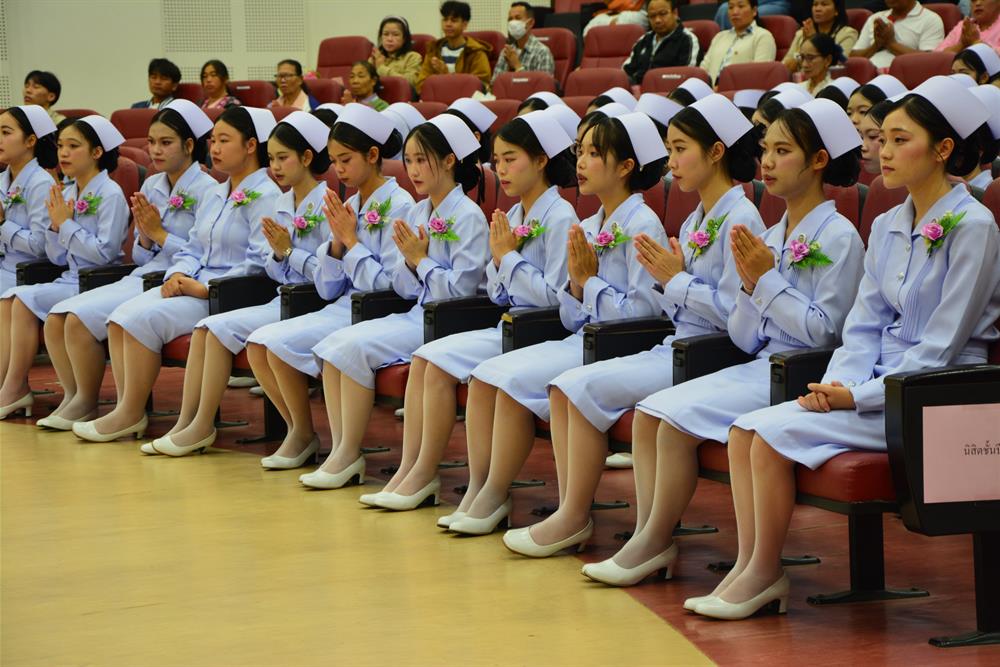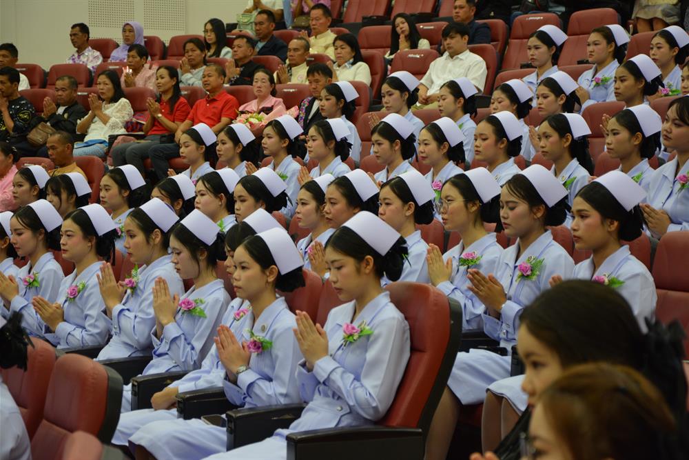 พิธีการดังกล่าวประกอบด้วยพิธีสงฆ์เพื่อความเป็นศิริมงคลแก่ผู้สำเร็จการศึกษา พิธีมอบแถบหมวกและเข็มวิทยฐานะ ซึ่งได้รับเกียรติจาก ศาสตราจารย์ ดร.เสมอ ถาน้อย รองอธิการบดีฝ่ายวิจัยและนวัตกรรม เป็นประธานในพิธี และผู้ช่วยศาสตราจารย์ ดร.ดาว เวียงคำ คณบดีคณะพยาบาลศาสตร์ กล่าวรายงานผลการศึกษา โดยท่านประธานในพิธีได้มอบแถบหมวกและเข็มวิทยฐานะแก่ผู้สำเร็จการศึกษาทั้ง 114 คน มอบเกียรติบัตรแก่ผู้ที่สอบได้คะแนนสูงสุดในการสอบประมวลความรู้สำหรับนิสิตหลักสูตรพยาบาลศาสตรบัณฑิต จำนวน 8 รายวิชา พร้อมทั้งให้ปัจฉิมโอวาทแก่ผู้สำเร็จการศึกษาทุกคน หลังจากนั้นตัวแทนนิสิตพยาบาลศาสตร์ชั้นปีที่ 1-3 กล่าวแสดงความยินดี และตัวแทนผู้สำเร็จการศึกษากล่าวแสดงความรู้สึก นอกจากนี้ยังมีพิธีอำลาสถาบันเพื่อเปิดโอกาสให้ผู้สำเร็จการศึกษาได้แสดงมุฑิตาจิตแก่คณาจารย์ผู้ประสิทธิ์ประสาทวิชาความรู้ ลำดับสุดท้ายเป็นการถ่ายภาพหมู่ร่วมกัน พิธีการดังกล่าวมีแขกผู้มีเกียรติ นิสิตพยาบาล และผู้ปกครองเข้าร่วมงานเป็นจำนวนมาก
