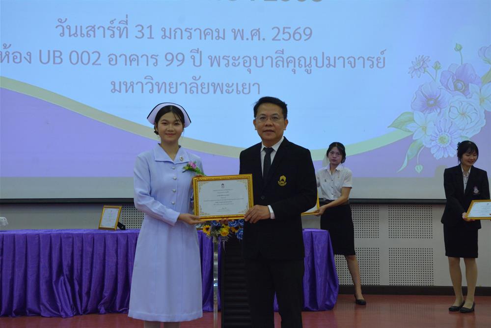 วันเสาร์ที่ 31 มกราคม พ.ศ. 2569 คณะพยาบาลศาสตร์ มหาวิทยาลัยพะเยา จัดพิธีสำเร็จการศึกษานิสิตพยาบาลศาสตร์ ประจำปีการศึกษา 2568 ณ ห้อง UB002 อาคาร 99 ปี พระอุบาลีคุณูปมาจารย์ มหาวิทยาลัยพะเยา